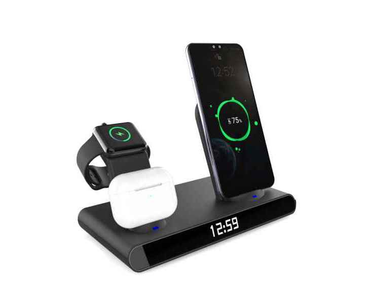 Часы электронные Abbatt мультифункциональные с беспроводной зарядкой мощностью 10W. Особенность этих электронных часов заключается в том, что они выполянют функцию не только часов и будильника, а еще с их помощью можно заряжать свои гаджеты. Удобство беспроводной зарядки говорит само за себя - очень комфортно заряжать смартфон, часы и наушники, просто положив их на зарядную станцию, не подключая при этом к ним никаких кабелей. Также есть возможность быстрой зарядки Qi. При беспроводной зарядке устройство меньше подвержено перепадам в сети, чем при подключении к розетке, тем самым увеличивается срок службы аккумулятора. Благодаря интерфейсу Type-C (шнур идёт в комплекте 1м) ваши гаджеты будут заряжаться более эффективно, а главное - одновременно. Вы можете смотреть фильмы, слушать музыку, звонить или отправлять сообщения во время всего процесса зарядки. Входы: 9V/2A 12/2A. Выходы: Беспроводной 10W / 7.5W / 5W / USB 5V / 0.8-1A / Airpod 3W / Apple watch 2.5W. Совместимость с Apple 8 и выше.