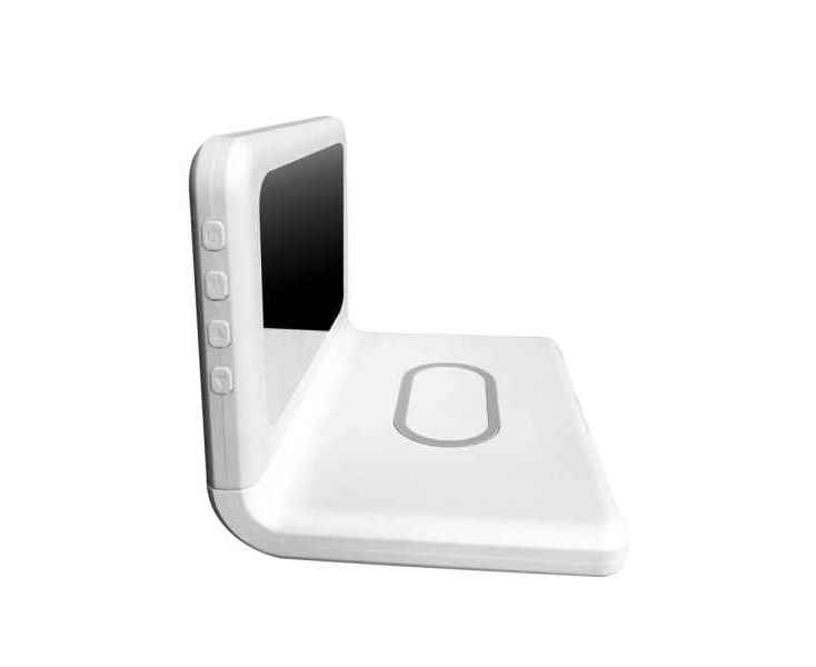 Многофункциональные электронные часы Konner с угловой формой,выдержанным дизайном LED экрана и удобной площадкой для беспроводной зарядки мощностью 10W. Функции: Время / Температура / Будильник / Беспроводная зарядка Qi.