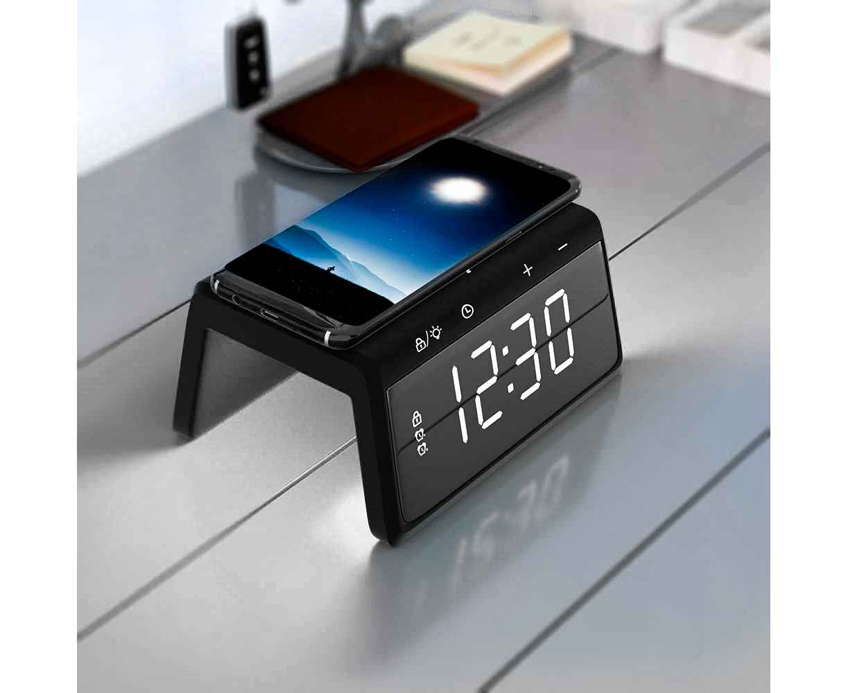 Подробнее о Часы настольные Bridge с функцией беспроводной зарядки, черный