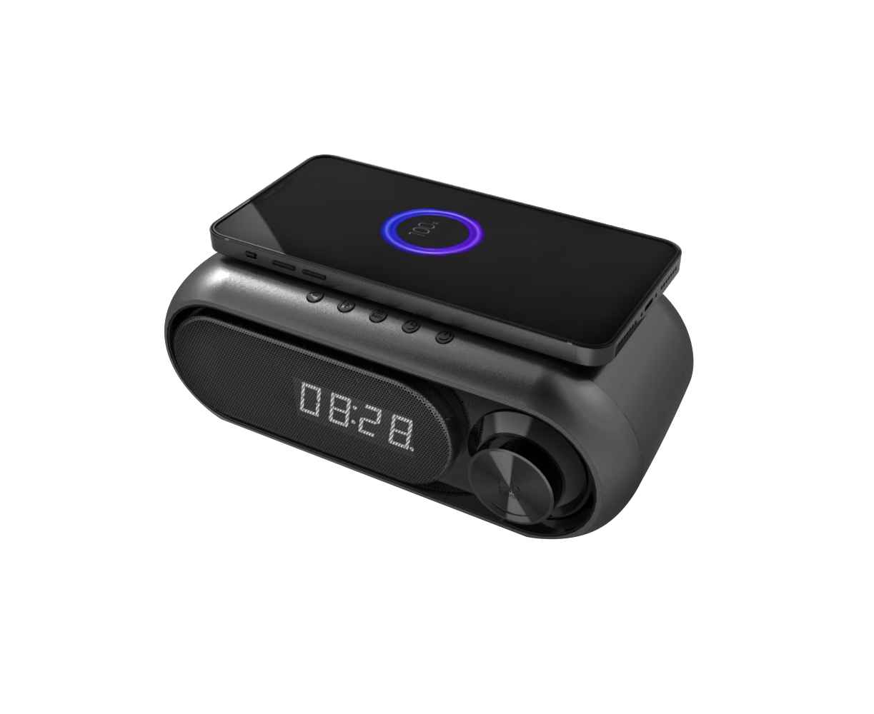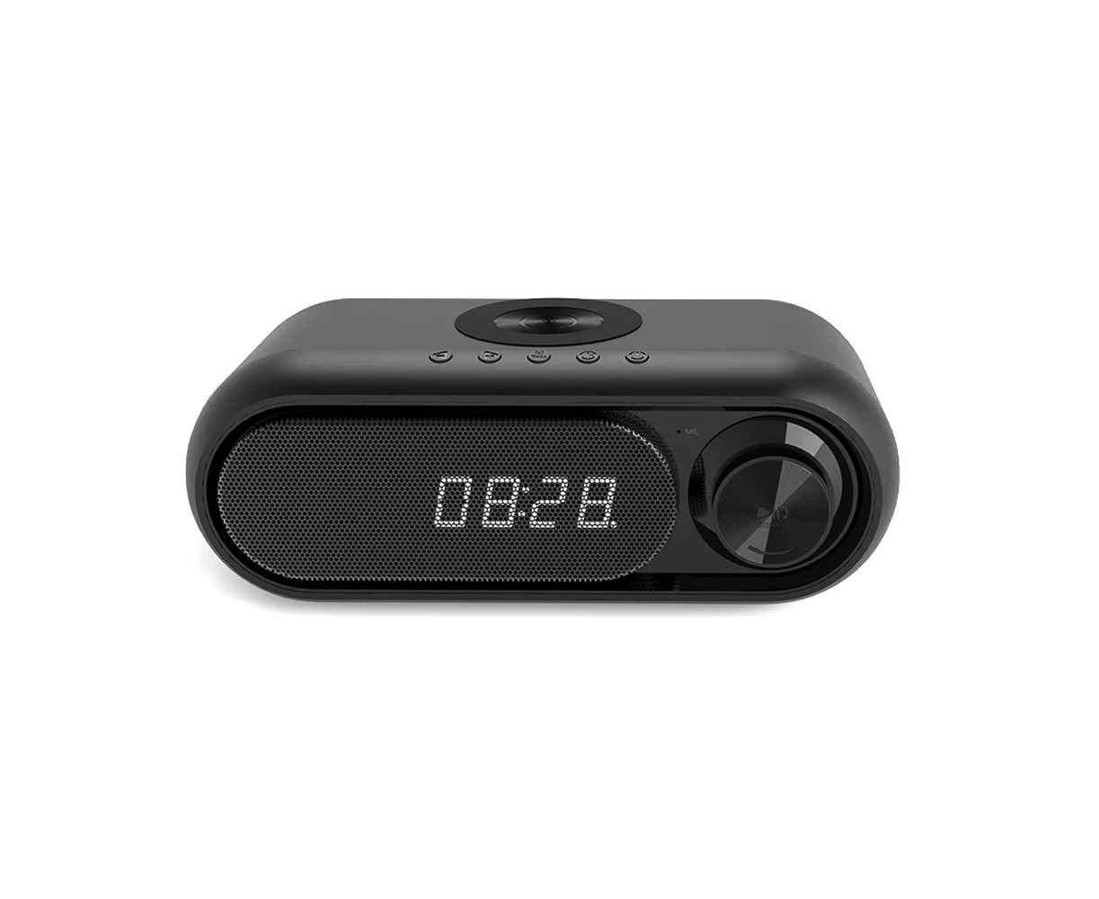 Многофункциональные электронные часы Radon с классической формой радиомагнитолы идеально подходят для любого интерьера офиса или квартиры. Функции: Время / Будильник / FM-Радио/ Беспроводная зарядка по технологии Qi мощностью 5W/ Беспроводная колонка/ Оснащена встроенным микрофоном, что позволяет использовать ее в качестве громкой связи для телефонных звонков.