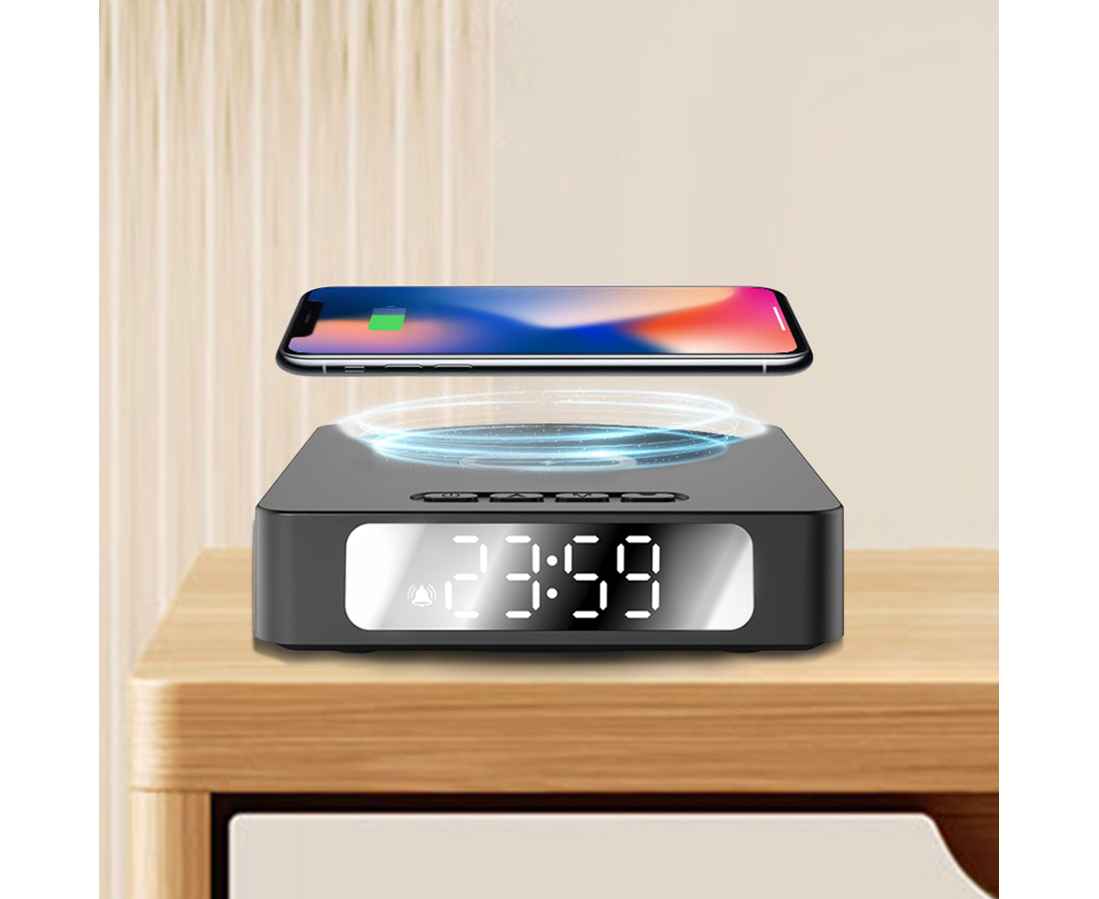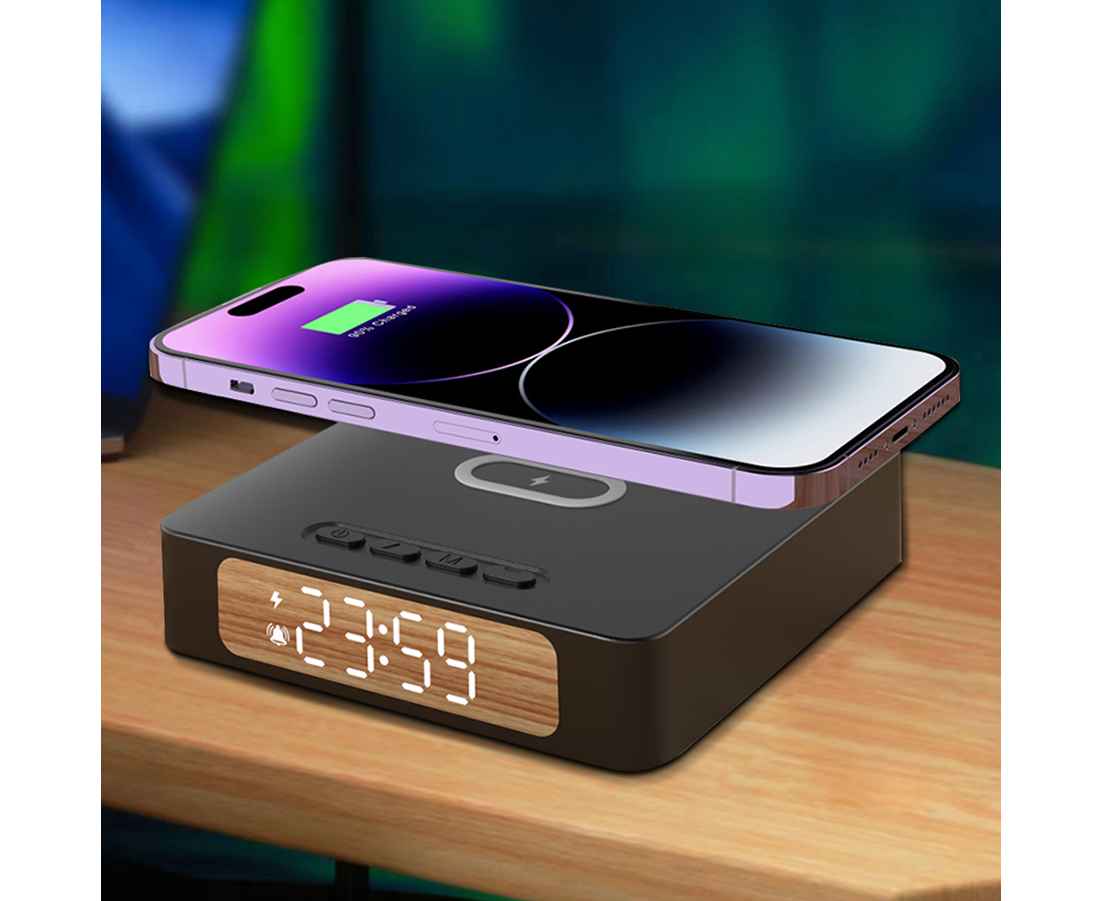 ⏰ Заряжайте свои устройства с мощностью беспроводной зарядки 15W, следите за временем и пользуйтесь функцией будильника — всё в одном устройстве!