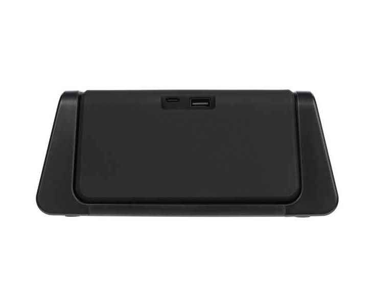 Зарядная станция совместима со всеми мобильными устройствами, поддерживающими технологию беспроводной зарядки Qi. Зарядка начнется автоматически при размещении смартфона на индукционной площадке. USB-порт для проводной зарядки расположен на задней стенке устройства.