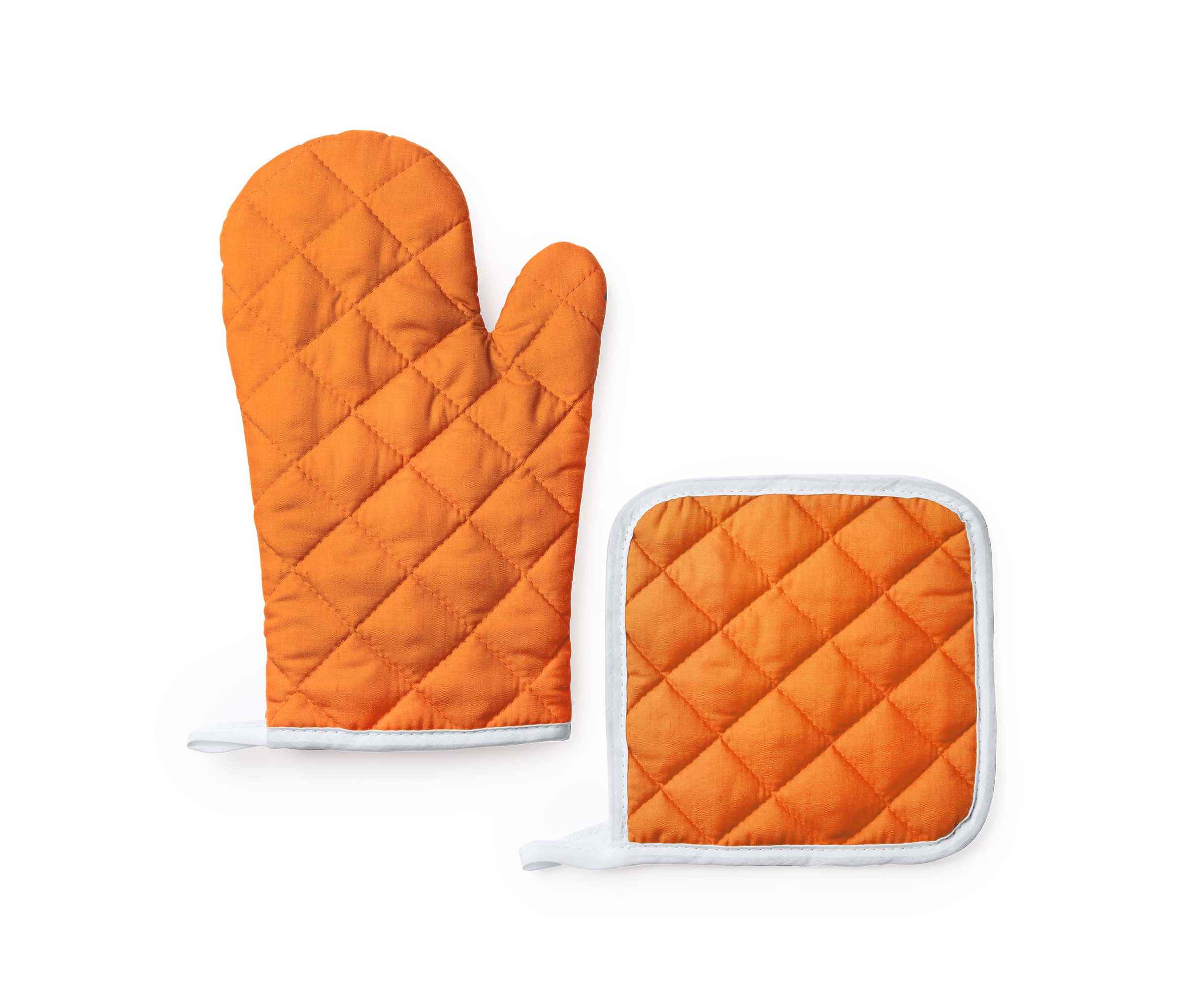 Кухонные рукавицы из 100% переработанного хлопка, с плоской стороной, идеально подходящей для маркировки, и ремнем для подвешивания.