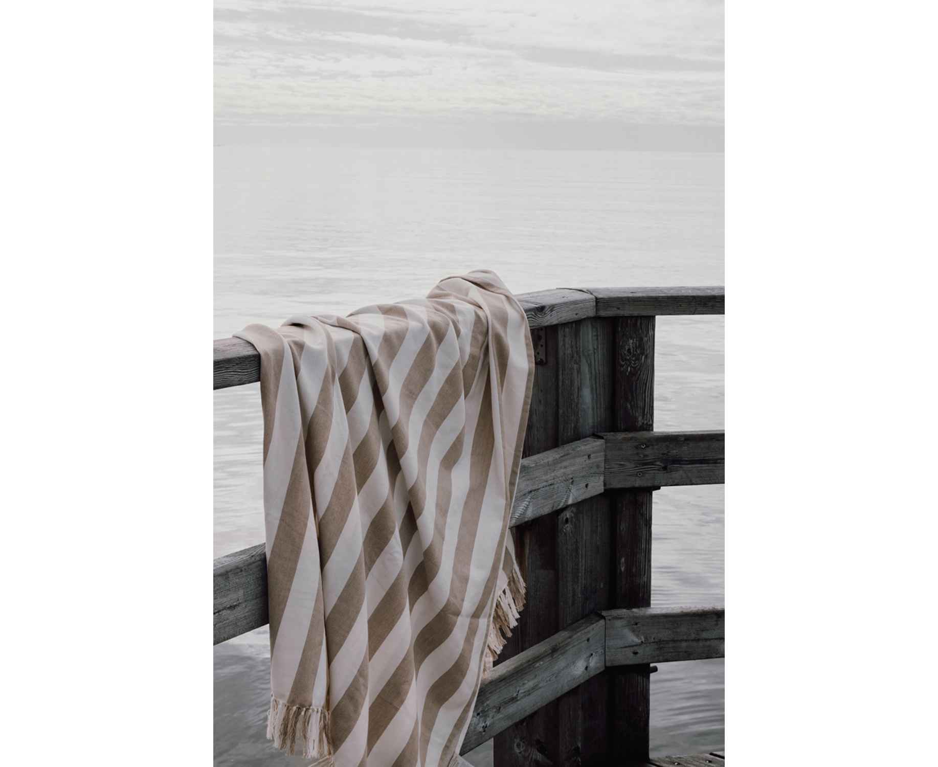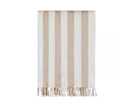 Плед Ornos с декоративной бахромой по коротким сторонам выполнен из легкой и воздушной ткани плотностью 200 г/м². Он сочетает мягкость и комфорт хлопка с преимуществами быстрой сушки, которые дает полиэстер. Благодаря большому размеру 180×180 см плед можно использовать для отдыха на пляже или в шезлонге у бассейна.