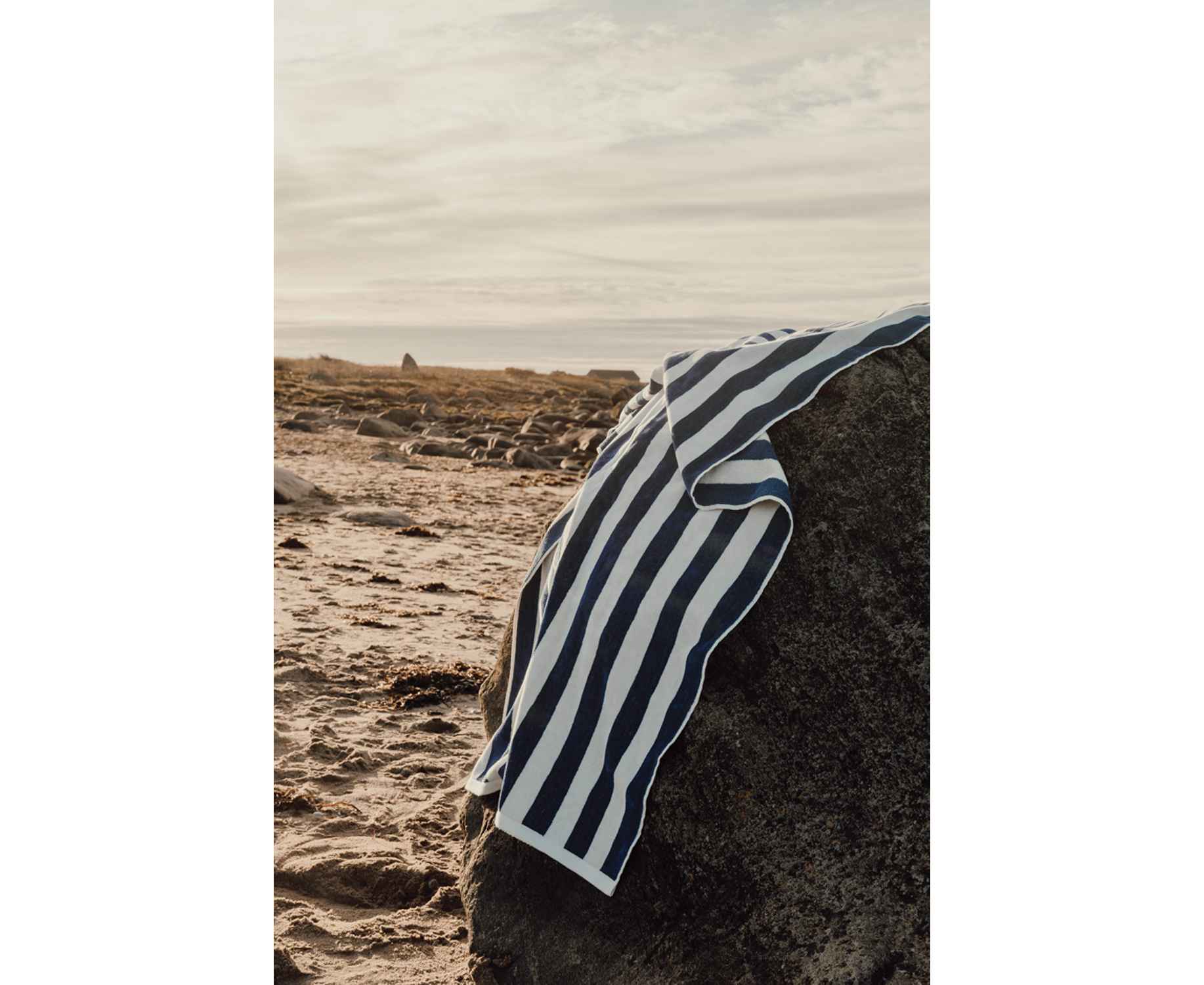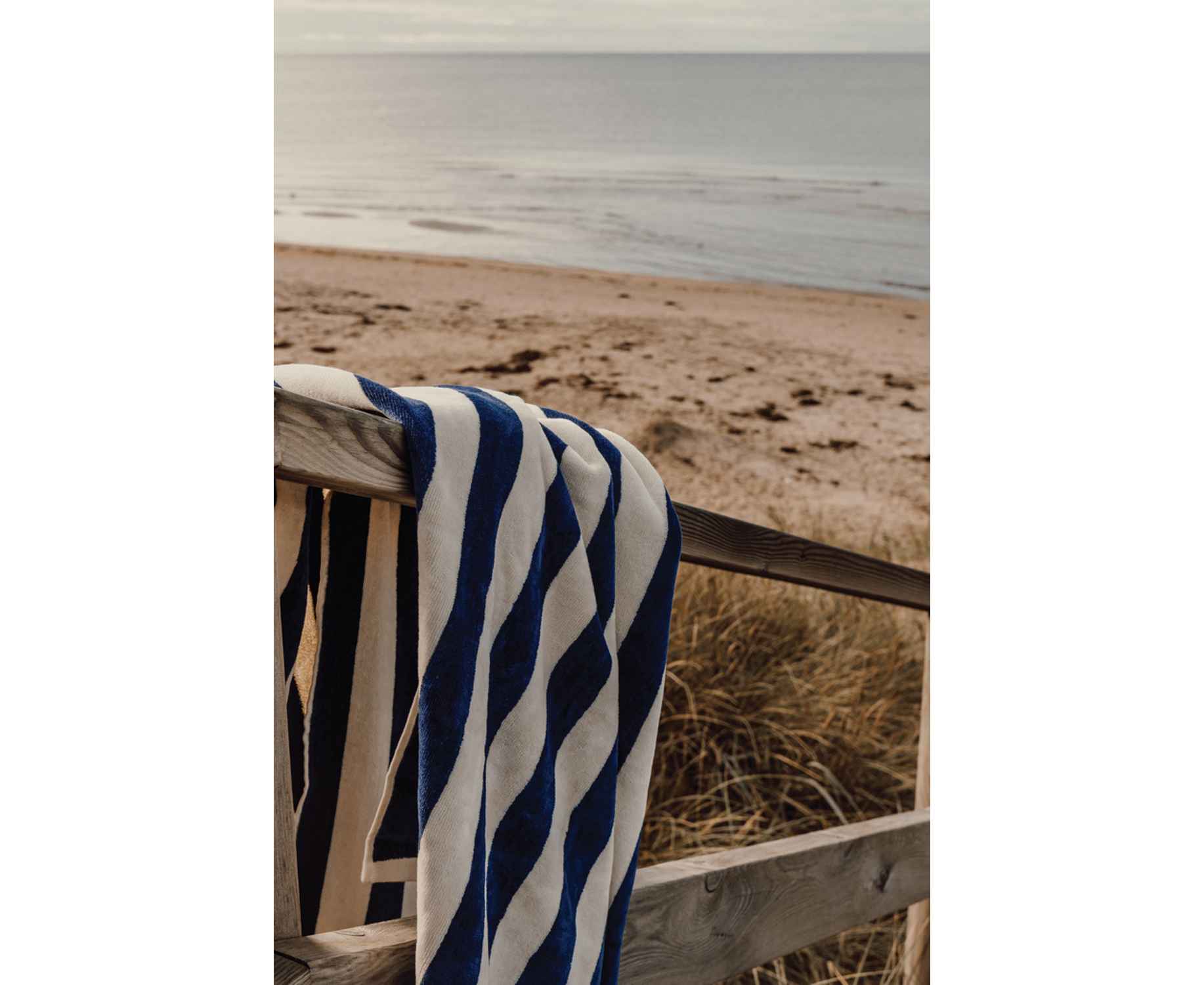 Это пляжное полотенце станет вашим идеальным спутником для солнечных дней на пляже, яхте или у бассейна. Классическая сине-белая полоска — это культовый принт, ассоциирующийся с морским стилем, французским шиком и летней свежестью.