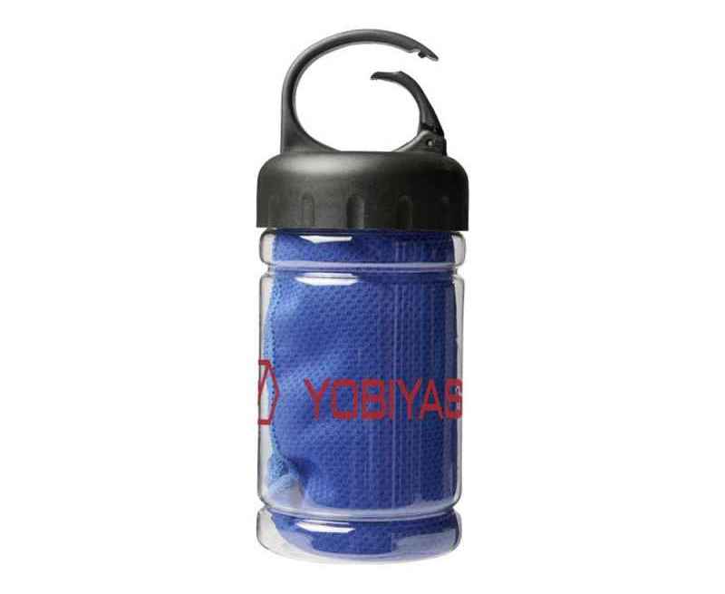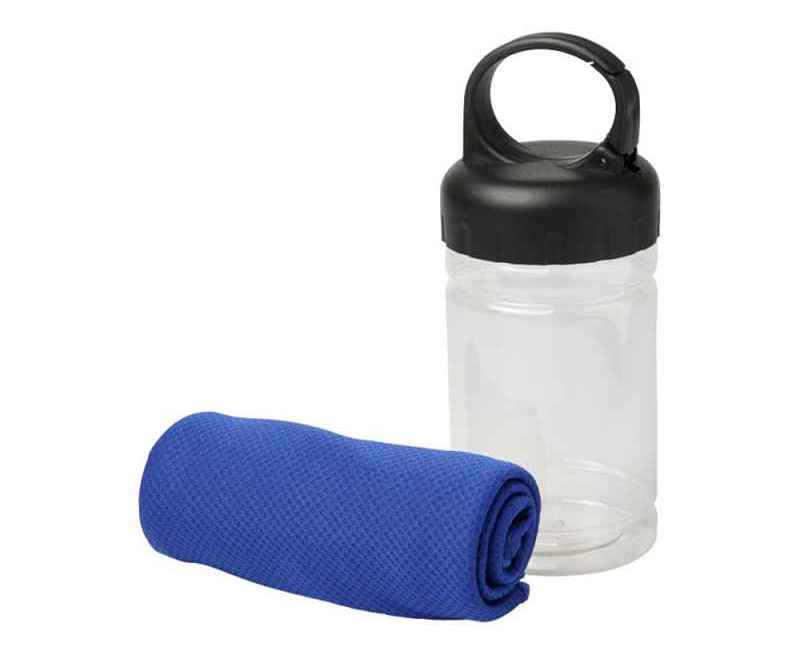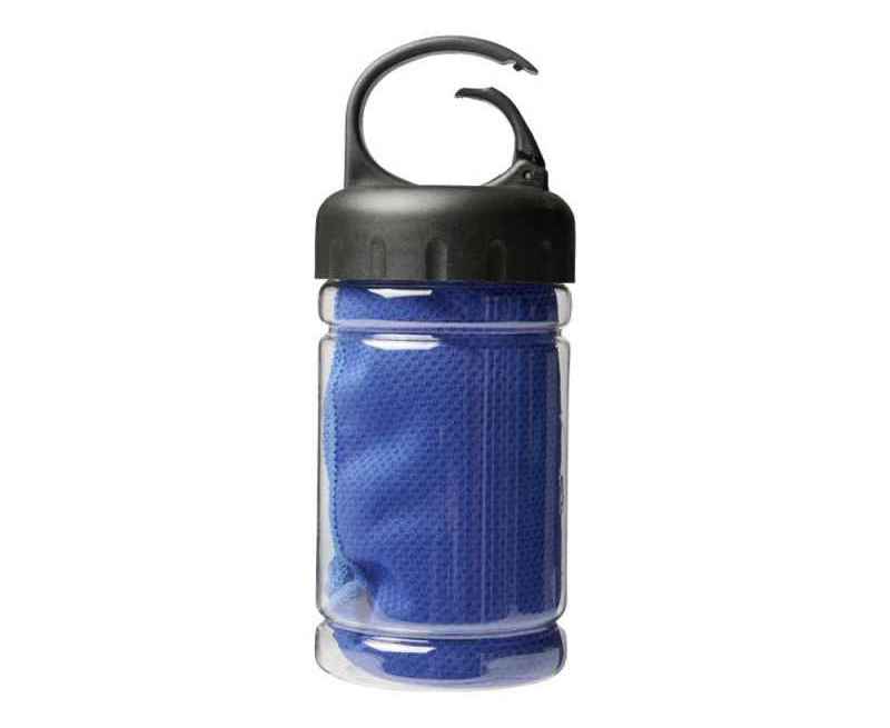 Охлаждающее полотенце Remy в ПЭТ-контейнере. Быстро впитывающее, быстро сохнущее и стираемое охлаждающее полотенце сохраняет прохладу во время тренировок или любых других занятий на свежем воздухе. Поставляется в ПЭТ-контейнере с ручкой и встроенным карабином для удобной переноски. Доступно в 5 ярких цветах. На контейнере изображен большой логотип, он также может быть и на самом охлаждающем полотенце. Размер: 30 x 80 см. PET. 0,096.