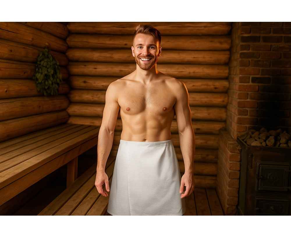 Отличный выбор для любителей парных — вафельный килт, идеально подходящий для бани, сауны или пляжа.