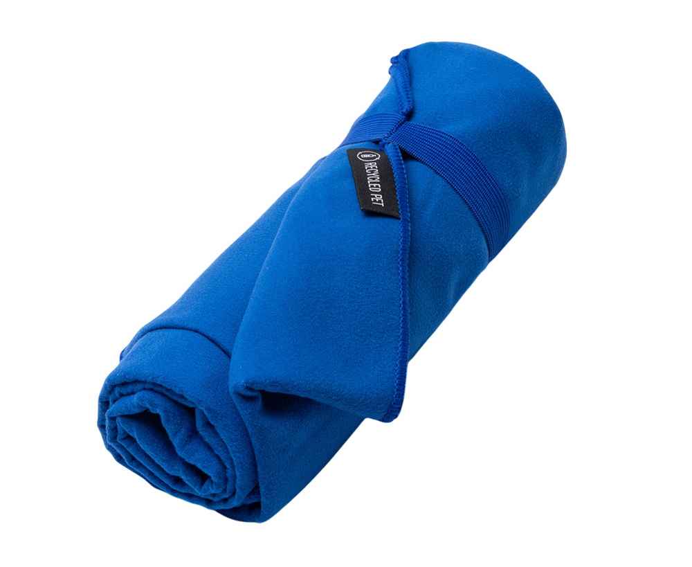 Легкое полотенце из микрофибры, изготовленное из переработанного ПЭТ, с ремешком для складывания и удобной транспортировки.