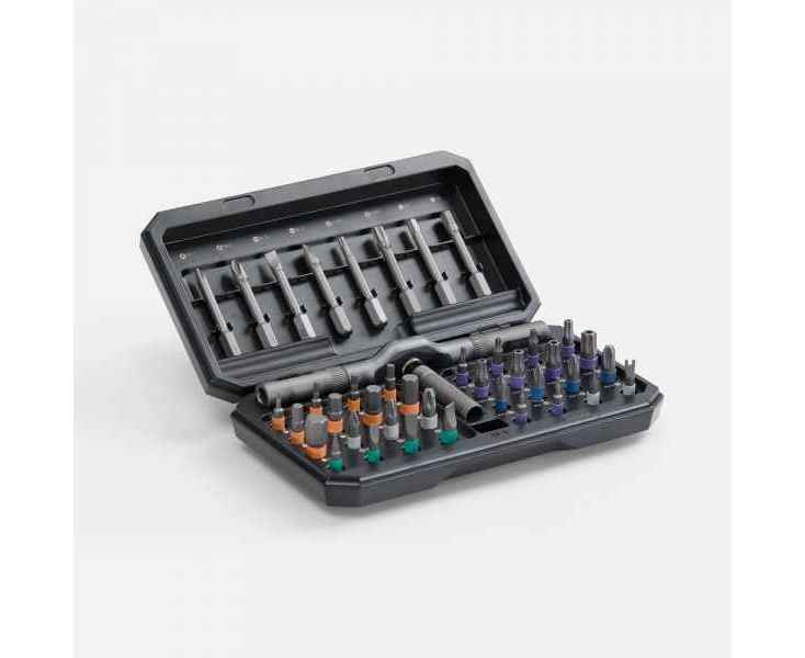 Набор Fix Trix отличается универсальностью: это самые востребованные типы бит в одном кейсе. Разборная отвертка с храповым механизмом особенно удобна для работы в труднодоступных местах. За счет обратного хода она снижает нагрузку на руку, а три магнитных держателя позволяют быстро менять биты без потери времени.