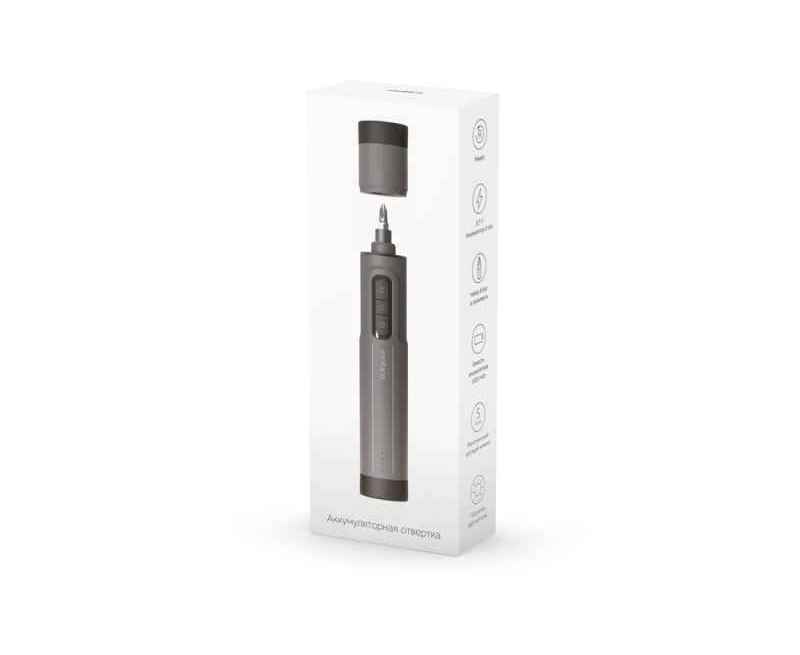 Компактная портативная отвертка с возможностью обратного хода. Надежный помощник при выполнении работ, связанных с закручиванием и откручиванием крепежей разного типа. Сборка мебели, электроники и других предметов проще и быстрее.