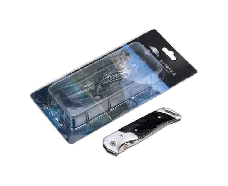 Подробнее о Stinger Нож складной Stinger, 90 мм (серебристый), материал рукояти: алюминий (чёрно-серебристый)