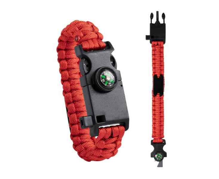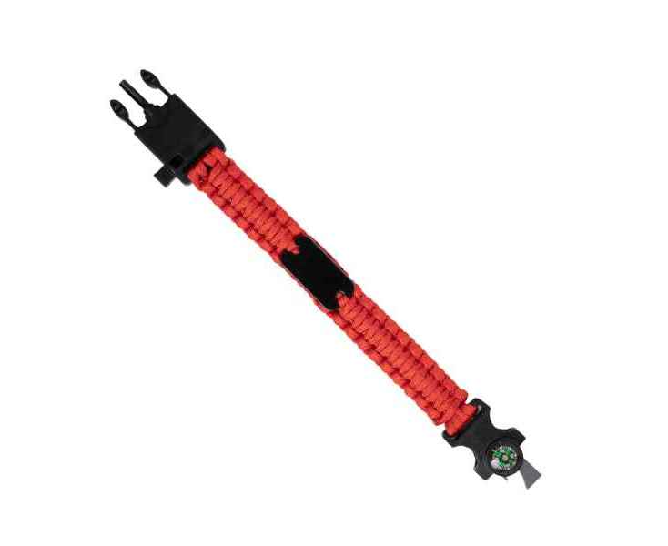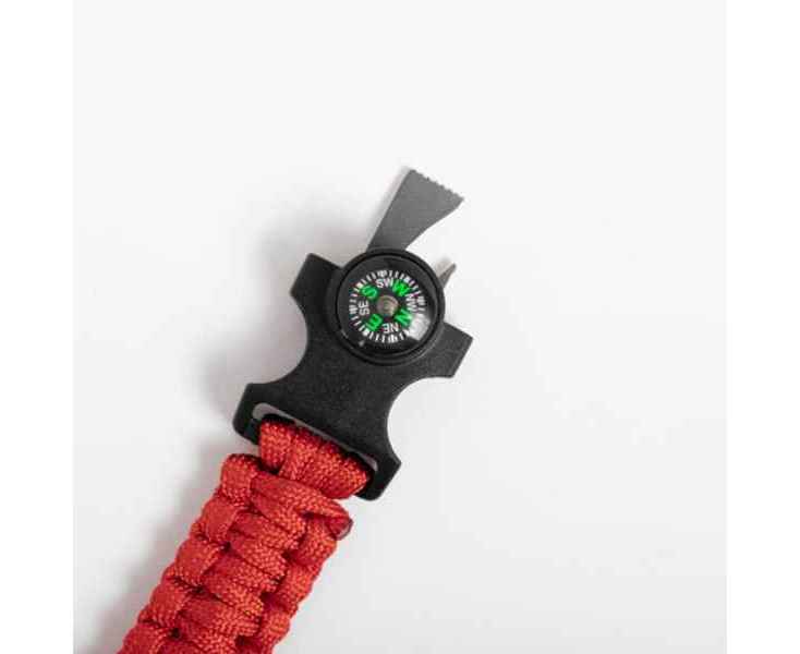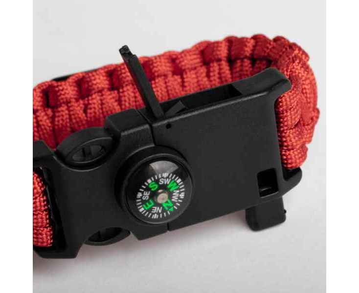 Многофункциональный походный браслет. Выполнен из прочного нейлона (паракорда). Включает в себя 4 функции: компас, свисток, кремневый скребок (при ударе его о металл выскакивают искры) и открывашка. Отдельно стоит отметить удобную застежку.