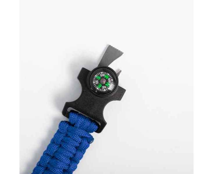 Многофункциональный походный браслет. Выполнен из прочного нейлона (паракорда). Включает в себя 4 функции: компас, свисток, кремневый скребок (при ударе его о металл выскакивают искры) и открывашка. Отдельно стоит отметить удобную застежку.