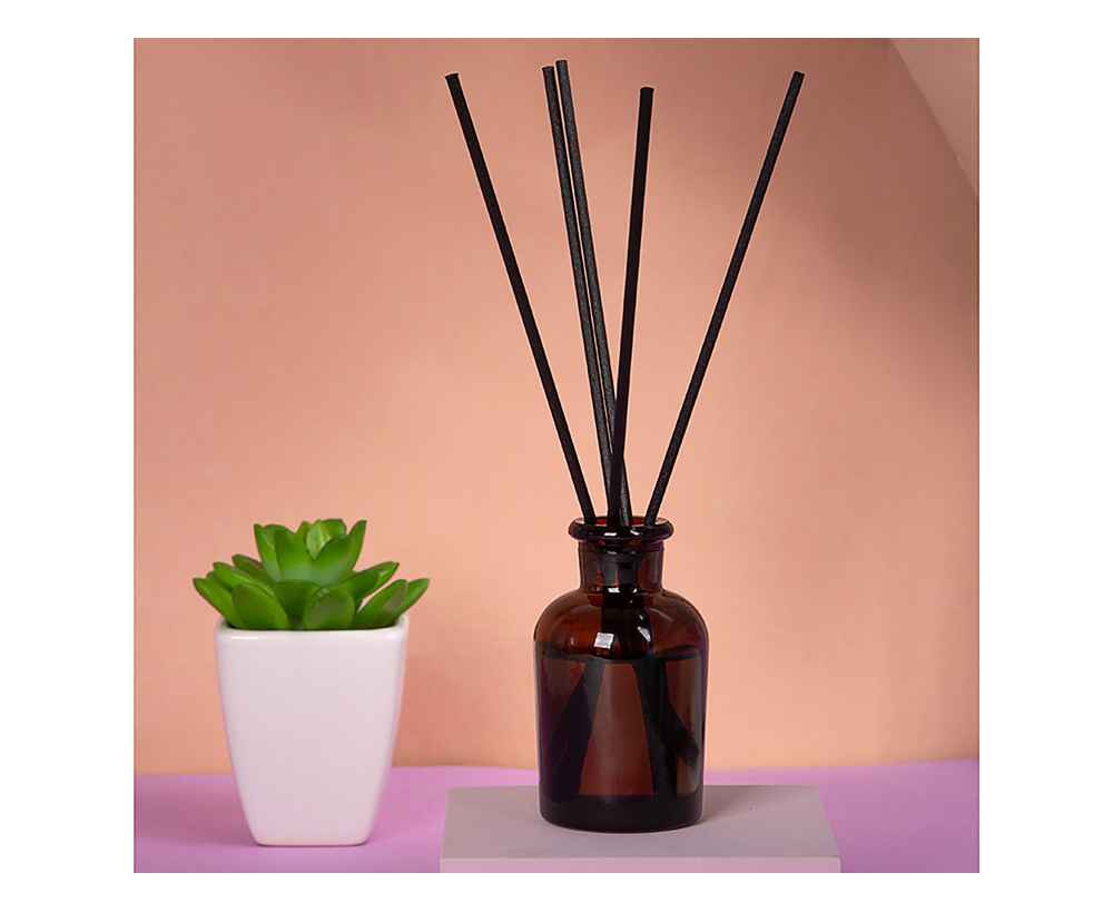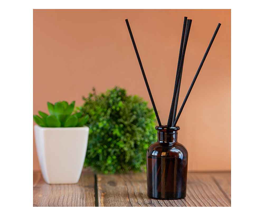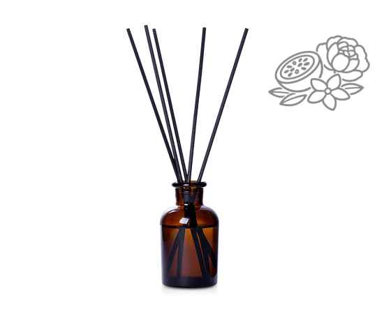 Объём диффузора 50 мл. Его будет достаточно для умеренного поддержания аромата в комнате до 15м2 в течение двух месяцев использования. Насыщенность аромата регулируется количеством используемых фибровых палочек.