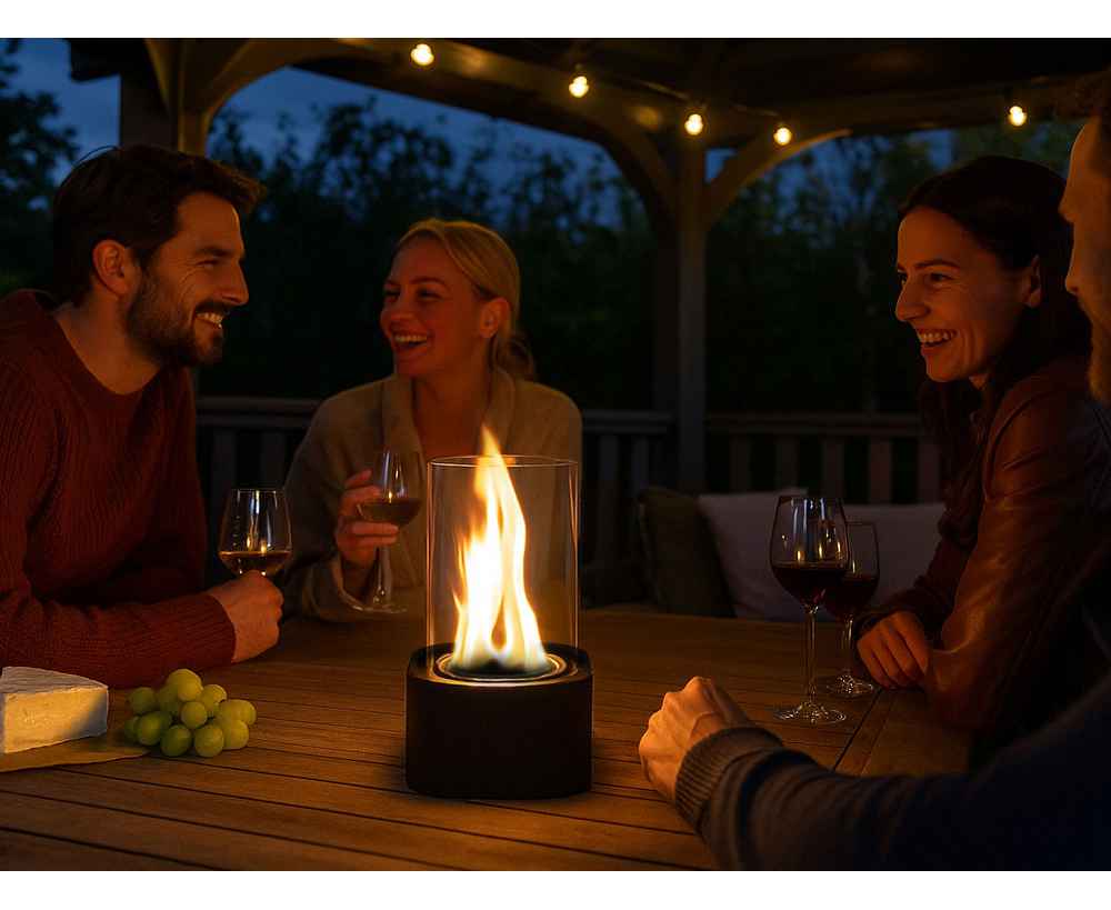 Камин работает на жидком биотопливе на основе этанола (в комплект не входит), не выделяет дыма или едкого запаха, не требует дымохода и сложной установки. Компактный и экологически безопасный, он идеально подходит для любых пространств.
