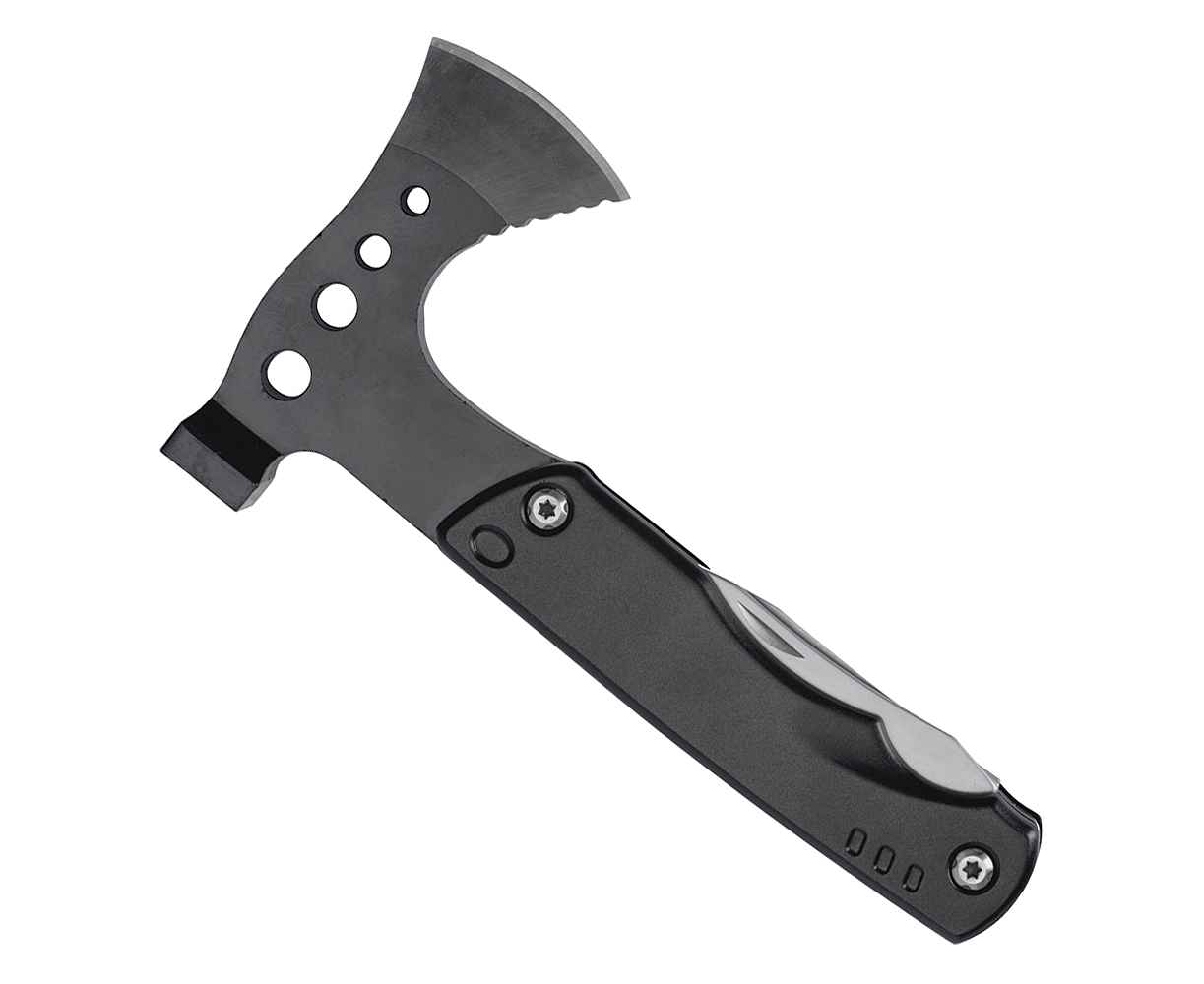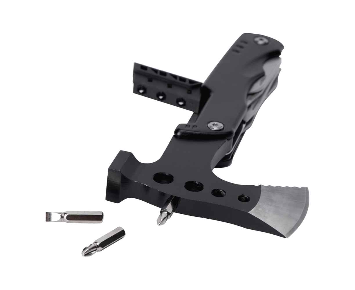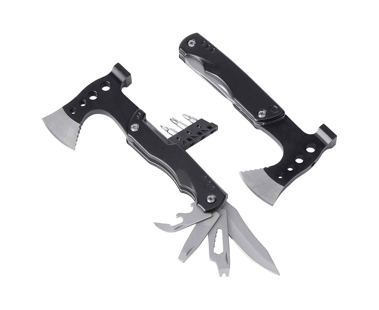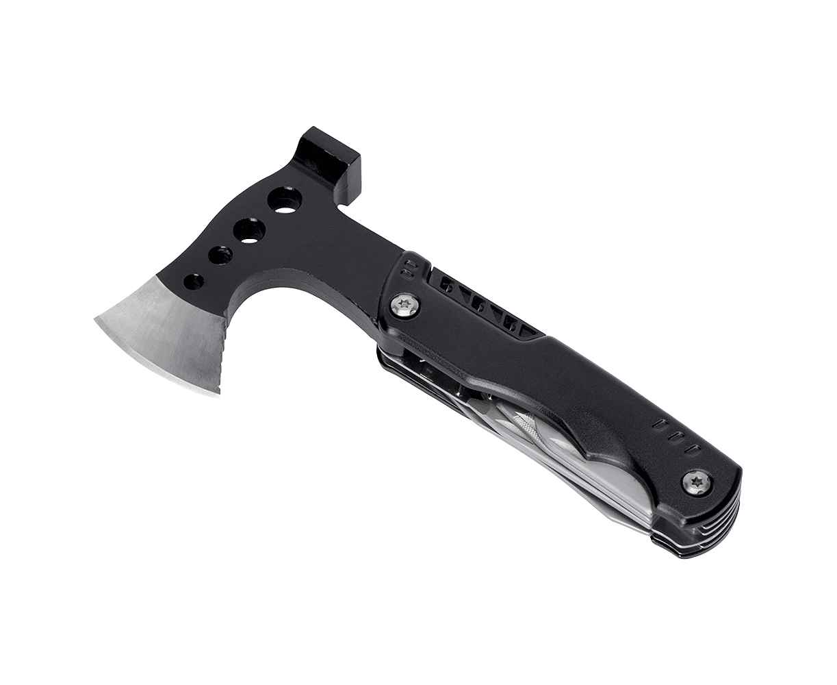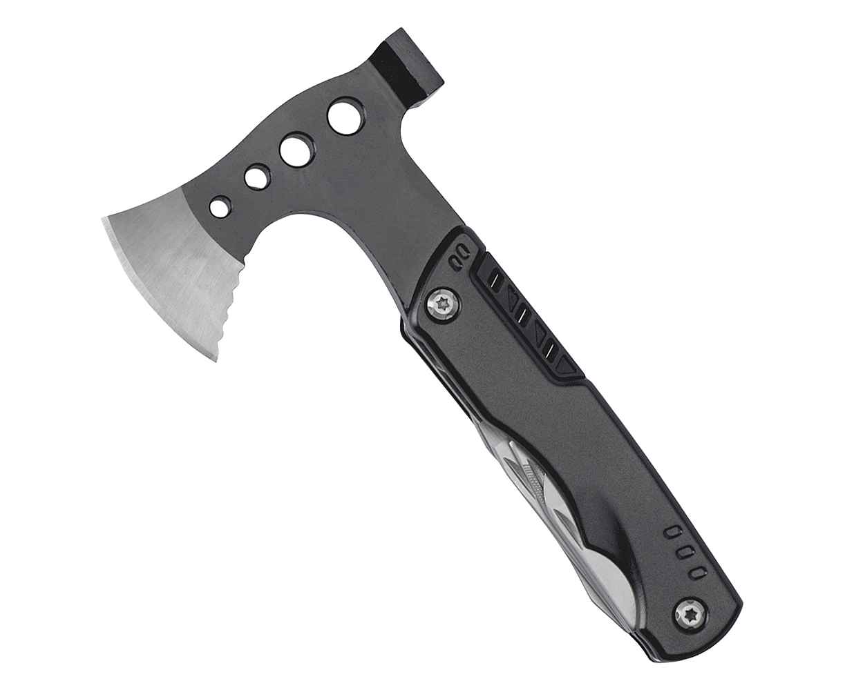 Практичный и надежный инструмент для активного отдыха, дачи или в качестве подарка. Изготовлен из нержавеющей стали марки 420, мультитул обладает весом 404 г — это обеспечивает удобство при использовании топора и молотка, добавляя уверенность в каждом движении.
