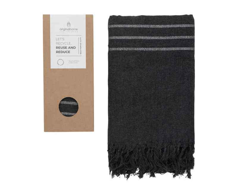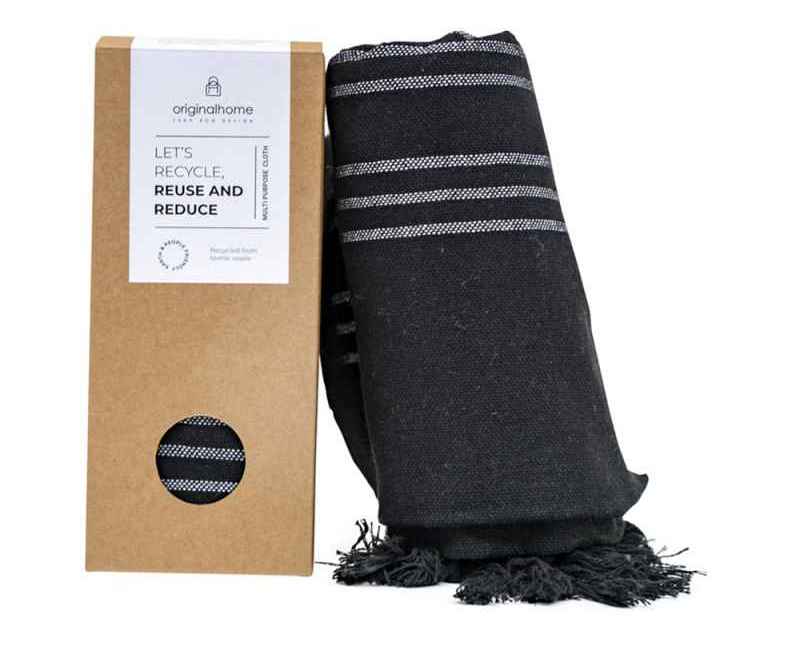 Этот универсальное изделие — достаточно плотное, чтобы использовать его как плед или полотенце, тонкое настолько, чтобы носить как шарф, и компактное, чтобы брать с собой куда угодно. Сделанное из 100% переработанных материалов текстильной отрасли в Бангладеше и сотканное на традиционной ручной ткацкой раме, оно способствует развитию женского предпринимательства. Идеальный социальный подарок, который вносит вклад как в устойчивое, так и в социально ответственное дело. Размер: 85 × 175 см. Состав: 70% переработанного хлопка, 25% переработанного полиэстера, 5% других переработанных волокон.