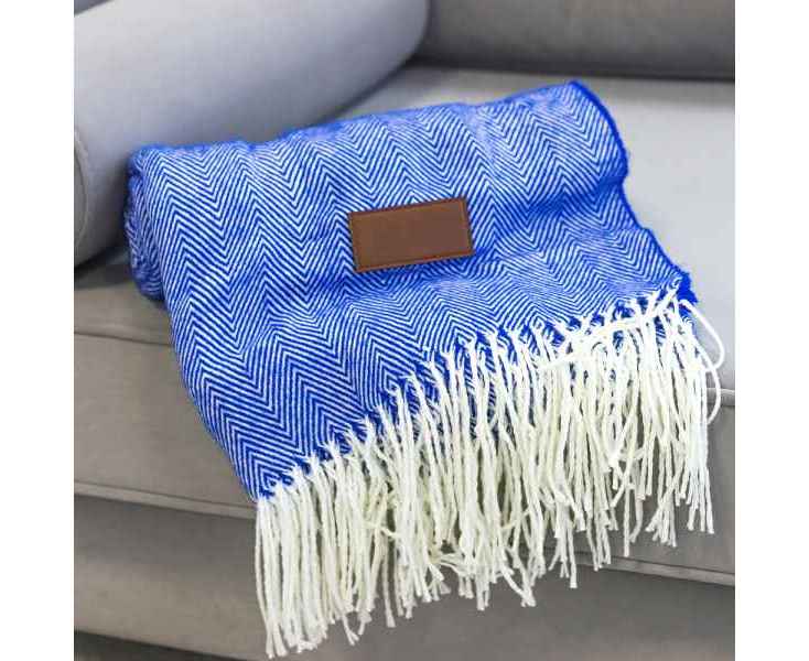 Плед SAMUM изготовлен из высококачественной акриловой пряжи, что позовляет добиться мягкости и тепла как от натуральной шерсти. Благодаря составу плед легкий, хорошо сохраняет теплоизолирующие свойства и надолго радует внешним видом. Также гипоаллергенен, не накапливает статическое электричество и легко стирается. Плед имеет классический узор “елочка”, с бахромой по краям. Для нанесения логотипа предусмотрена нашивка из кожзама (8 x 4 см). Плед упакован в пластиковый пакет, сложен в виде рулона с текстильным держателем.
