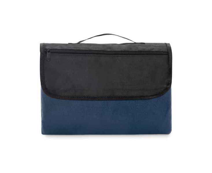 Плед для пикника из флиса RPET 150 г/м² (68% переработанный полиэстер/32% обычный полиэстер) с водоотталкивающим покрытием PEVA с обратной стороны. Спереди карман на молнии и ручка.