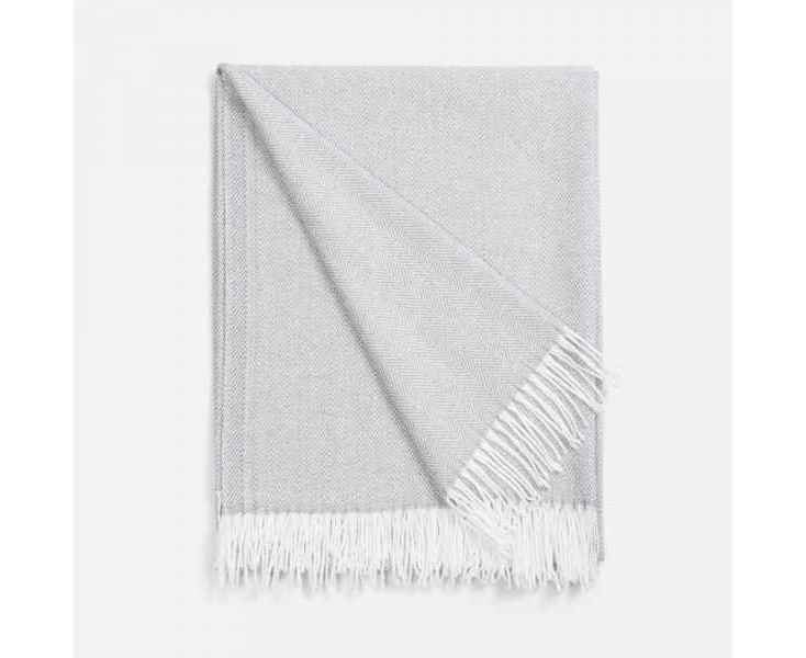 Классический рисунок «елочка» не слишком привлекает внимание, но в то же время добавляет изюминки. Смешанный состав пряжи продлевает срок службы и существенно облегчает уход за пледом.