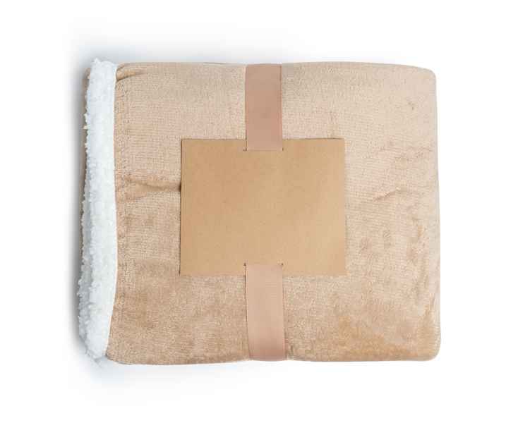 Плед в стиле шерпа из флиса плотностью 380 гсм. Карточка для печати и соответствующая цветная лента прилагаются.