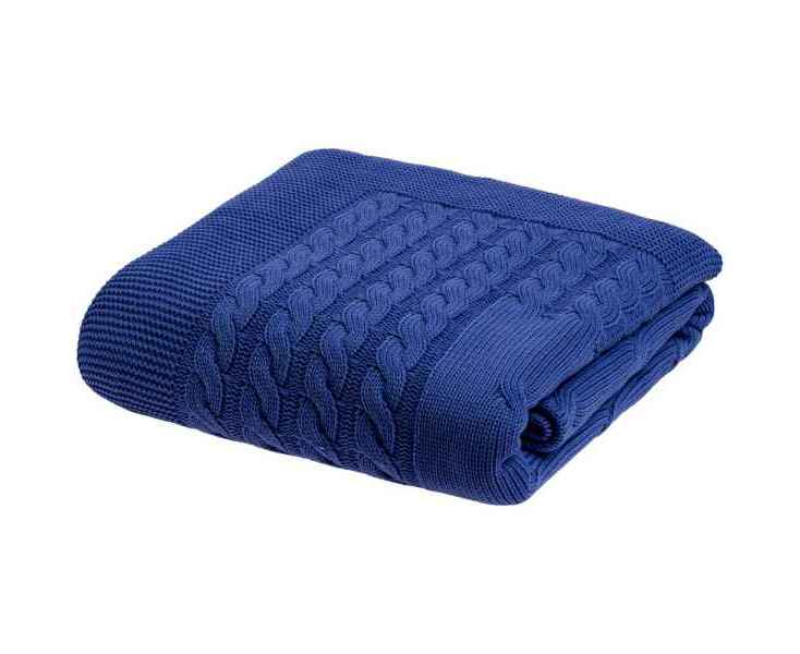 Модель: однотонный плед с фактурной вязкой, которая позволяет сделать его воздушным и объемным. Чередуя различные типы петель на гладком полотне, можно вывязать любую графику — логотип, текст, товарный знак.