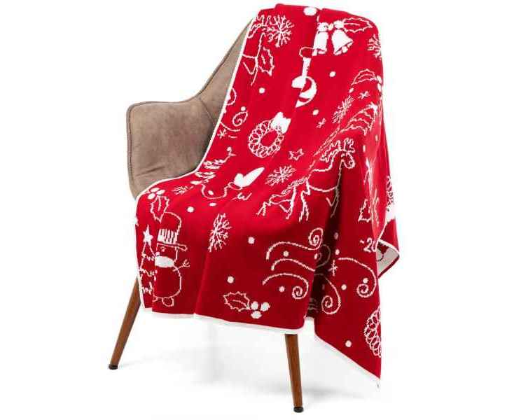 Плед с вывязанным логотипом и индивидуальным рисунком в фирменной цветовой гамме.