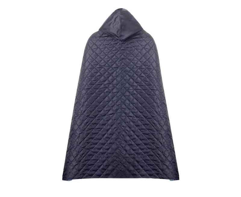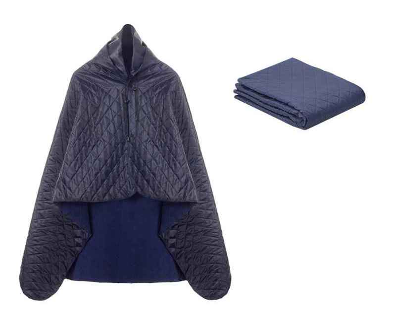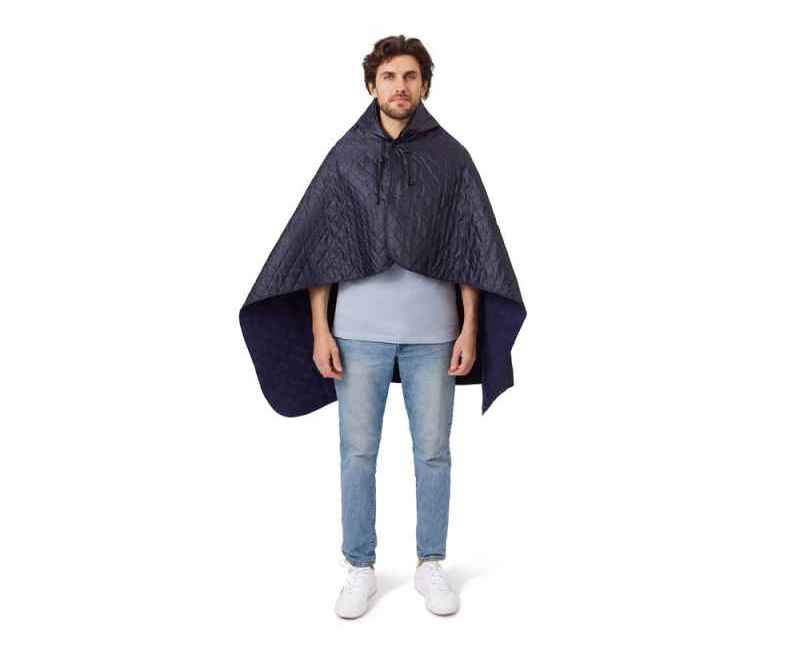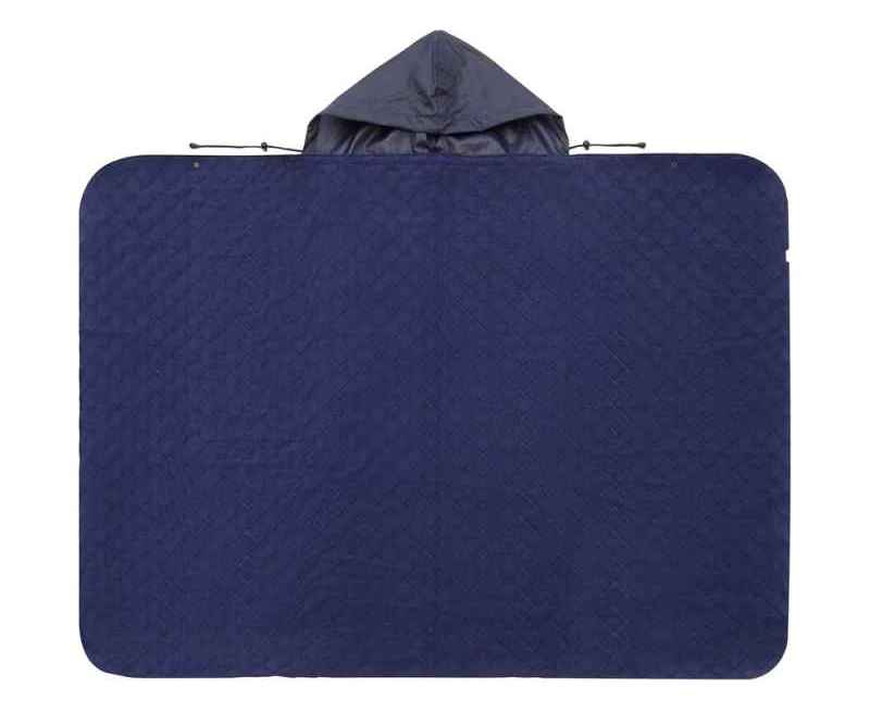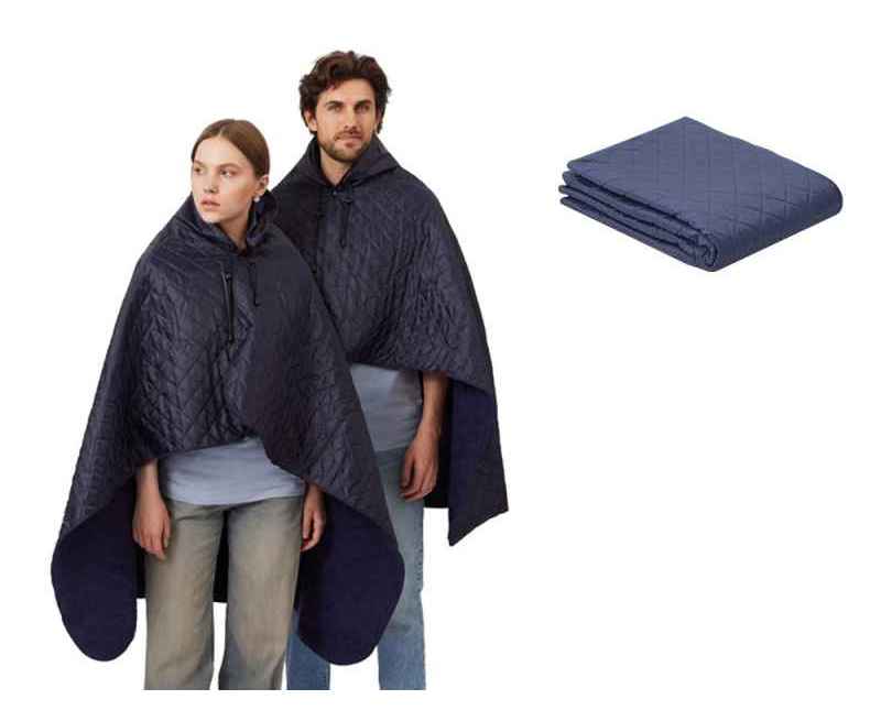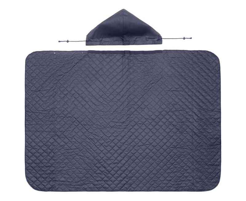 На внутренней стороне из флиса приятно и тепло сидеть, а наружная сторона из полиэстера с водоотталкивающим покрытием не позволяет пледу намокнуть или сильно испачкаться. Для больше удобства использования пледа во время дождя в комплекте идет капюшон, который фиксируется с помощью липучки. Накинув плед на плечи, застегните его на кнопки вверху и наденьте капюшон. Вы не промокните во время неожиданного дождя!