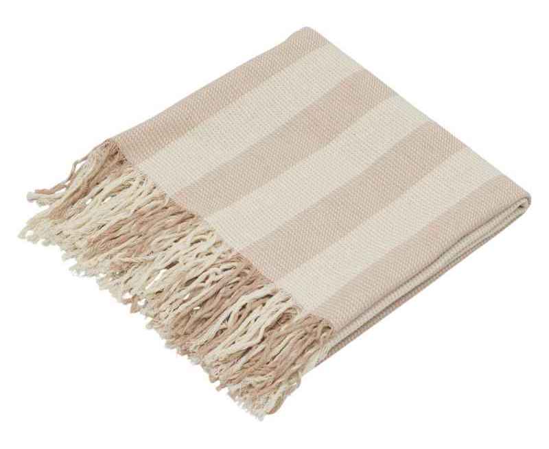 Хлопковый натуральный плед в модную полоску можно использовать как одеяло или как покрывало для украшения интерьера. Бахрома по бокам добавит комфорта и стиля. Немаркие цвета и легкий уход создают дополнительный комфорт при использовании.