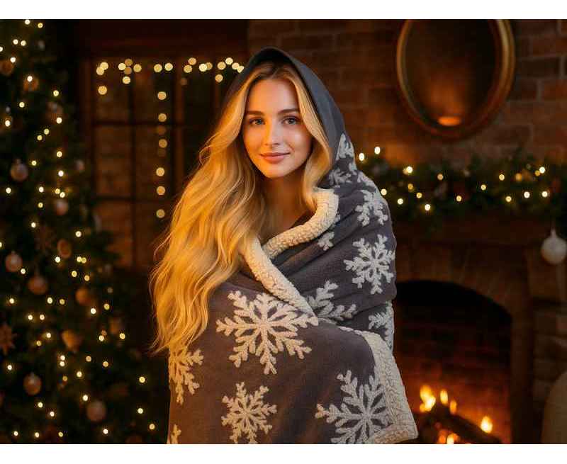 Подробнее о Плед Snowflake новогодний с капюшоном, 836530