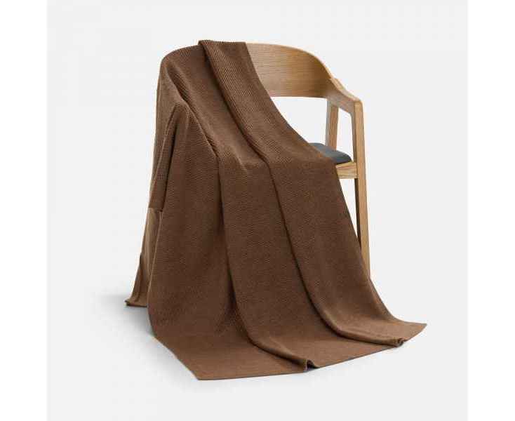 Плед поставляется в стильном кофре с аккуратным кошелечком на кнопке — продуманная деталь для удобного хранения и бережной транспортировки. Такой плед легко взять с собой в путешествие, он станет вашим любимым спутником в прохладное время года.