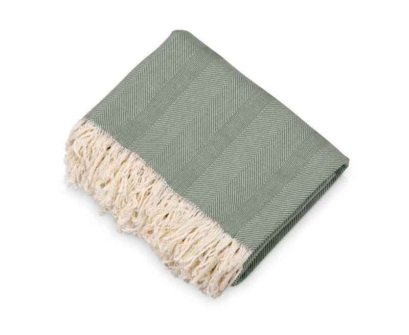 Плотный плед из натурального хлопка с бахромой по бокам можно использовать как одеяло или как покрывало для украшения интерьера.