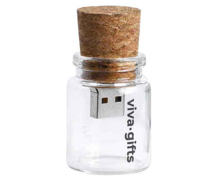 Флешка в виде стеклянной банки с пробкой. На корпус можно нанести УФ печать или гравировку.