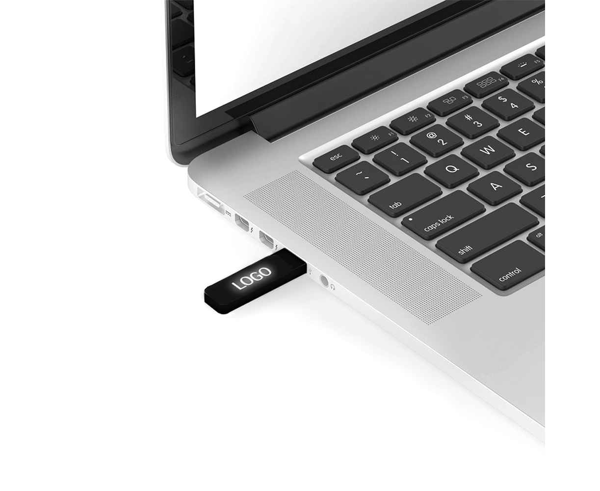 Флешка на 16 Гб, интерфейс 2.0. Белая подсветка логотипа после гравировки.