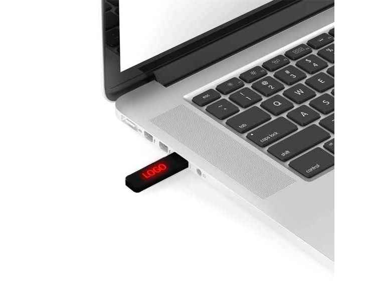 Флешка на 16 Гб, интерфейс 2.0. Красная подсветка логотипа после гравировки.