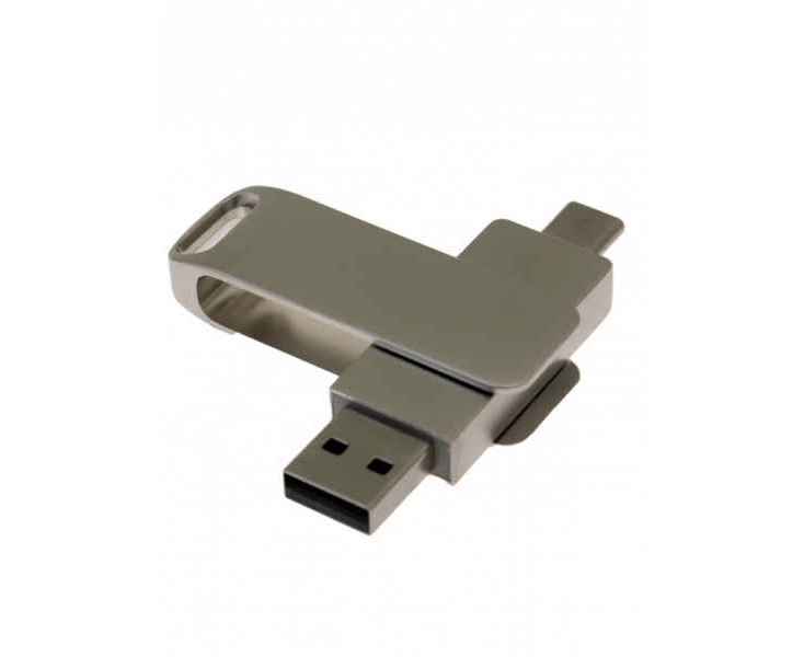 OTG235_TC Флеш-накопитель поворотный механизм 2 в 1, c дополнительным разъемом Type-C с одноцветным металлическим клипом, серебро