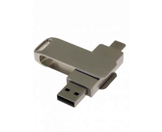 OTG235_TC Флеш-накопитель поворотный механизм 2 в 1, c дополнительным разъемом Type-C с одноцветным металлическим клипом, серебро
