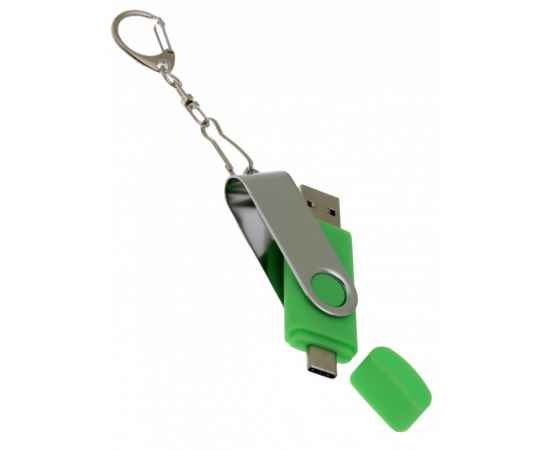 OTG_2in1_TC_030 Флеш-накопитель поворотный механизм, c дополнительным разъемом Type-C, зеленый
