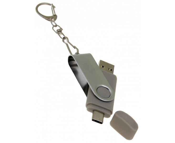 OTG_2in1_TC_030 Флеш-накопитель поворотный механизм, c дополнительным разъемом Type-C, серебро