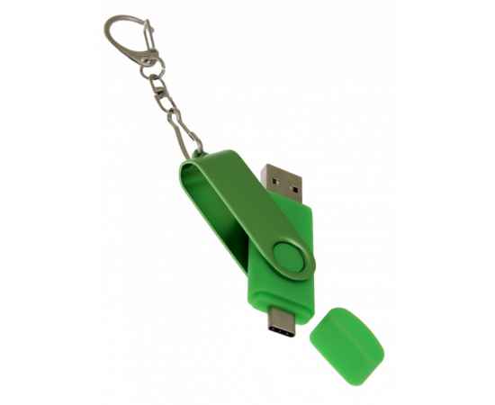 OTG_2in1_TC_031 Флеш-накопитель 2 в 1 поворотный механизм, c дополнительным разъемом Type-C с одноцветным металлическим клипом, зеленый