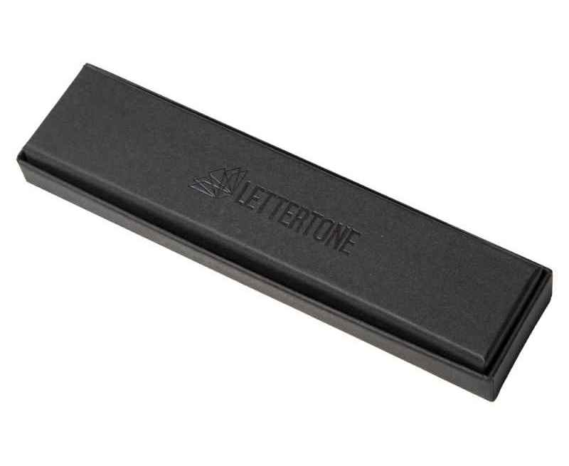 Поставляется ручка в чёрной матовой коробочке с прозрачным логотипом Lettertone на дне.