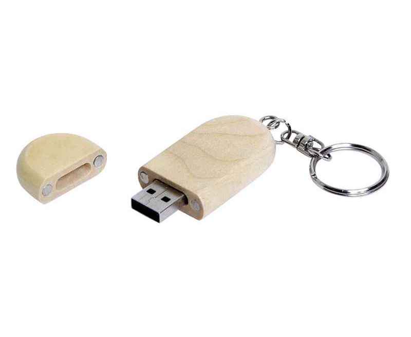 Флеш-накопитель овальной формы, колпачок с магнитом, объем памяти 64 Гб. Деревянный корпус.