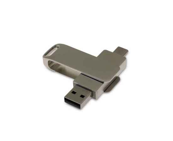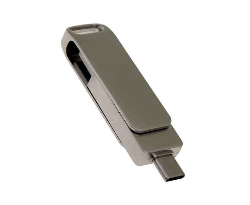 Флеш-накопитель поворотный механизм, c дополнительным разъемом Type-C с одноцветным металлическим клипом, объем памяти 16 Гб. Металлический корпус.