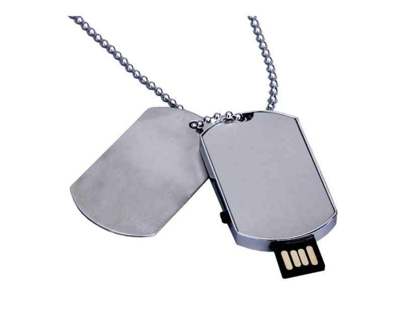 Металлическая флешка в форме армейского жетона. Длина цепочки 65 см.