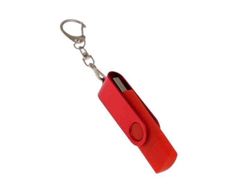 Флеш-накопитель 2 в 1 поворотный механизм, c дополнительным разъемом Type-C с одноцветным металлическим клипом, объем памяти 16 Гб. Пластиковый корпус.