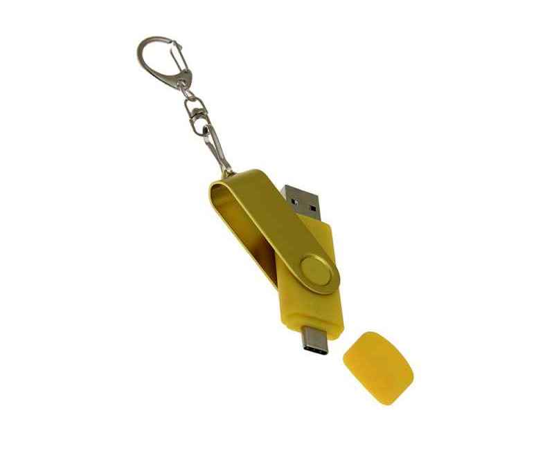 Флеш-накопитель 2 в 1 поворотный механизм, c дополнительным разъемом Type-C с одноцветным металлическим клипом, объем памяти 16 Гб. Пластиковый корпус.