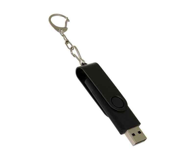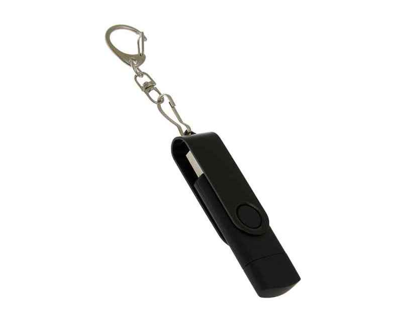 Флеш-накопитель 2 в 1 поворотный механизм, c дополнительным разъемом Type-C с одноцветным металлическим клипом, объем памяти 16 Гб. Пластиковый корпус.