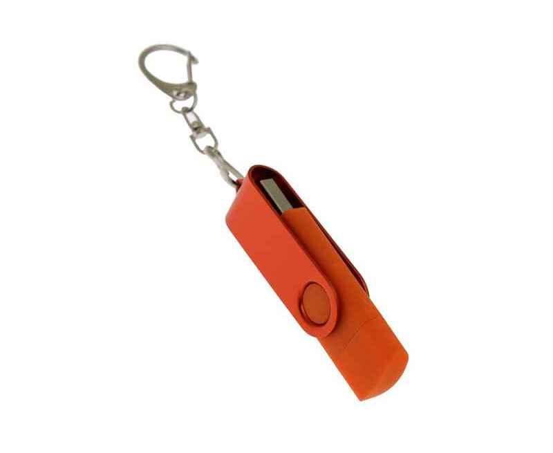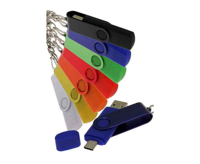 Флеш-накопитель 2 в 1 поворотный механизм, c дополнительным разъемом Type-C с одноцветным металлическим клипом, объем памяти 16 Гб. Пластиковый корпус.