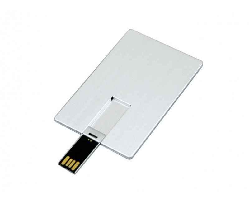 Флеш-накопитель в виде металлической карты, с раскладным чипом., объем памяти 16 Гб. Металлический корпус.