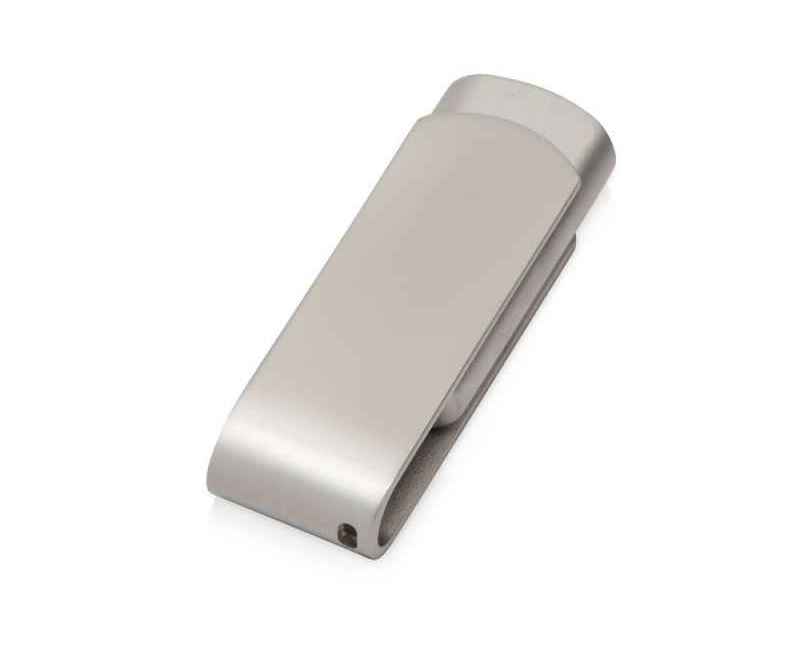 Флешка USB 2.0 с поворотным клипом на 16 Гб. Клип фиксируется в положениях на 90° и 180° градусов в обе стороны. Металлический матовый корпус. В клипе имеется отверстие под цепочку.